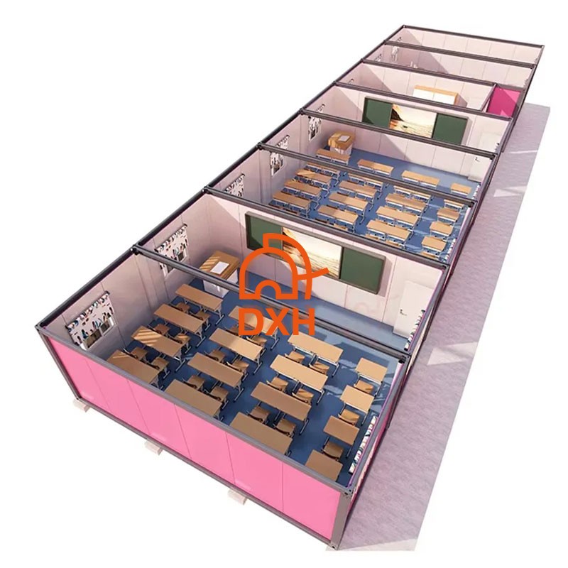 DetalhesDXH House's flat pack container school buildings provide ready-to-use learning and office spaces for students and educators. Our prefabricated container structures eliminate the lengthy construction cycles and site disruptions associated with traditional buildings. DXH House offers two standard container house sizes: 20-foot or 40-foot, and we also offer customizable container layouts. Our service commitment is to provide you with a fast-deployed, durable, and high-quality modular container school building.