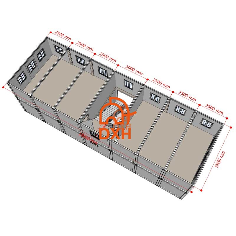 Desbloqueie todo o potencial de vida modular com a casa de contêineres modulares DXH. Meticulosamente criado e complementado por orientações técnicas on -line superiores, esta solução inovadora de contêineres oferece um espaço de vida ou escritório versátil e personalizável para atender às suas necessidades em mudança.